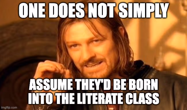 Materials were hard to produce and access before the Age of Amazon, and my fellow former The Egypt Game fans, we *cannot* simply put aside the fact that you and I likely wouldn’t have been born into the literate class.